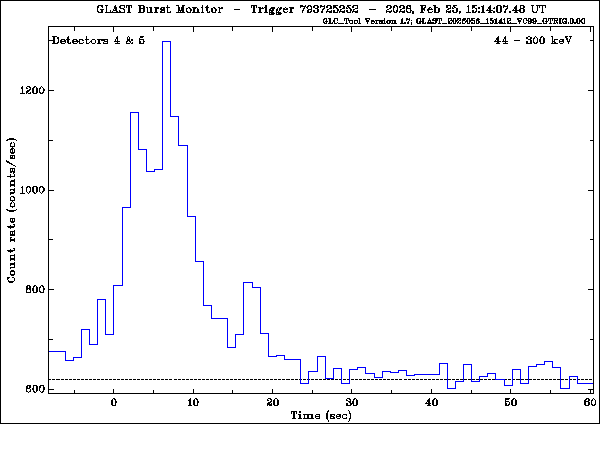 At 15:14:07 UT on 25 Feb 2026, the Fermi Gamma-ray Burst Monitor (GBM) triggered and located GRB 260225B (trigger 793725252.479854 / 260225635).